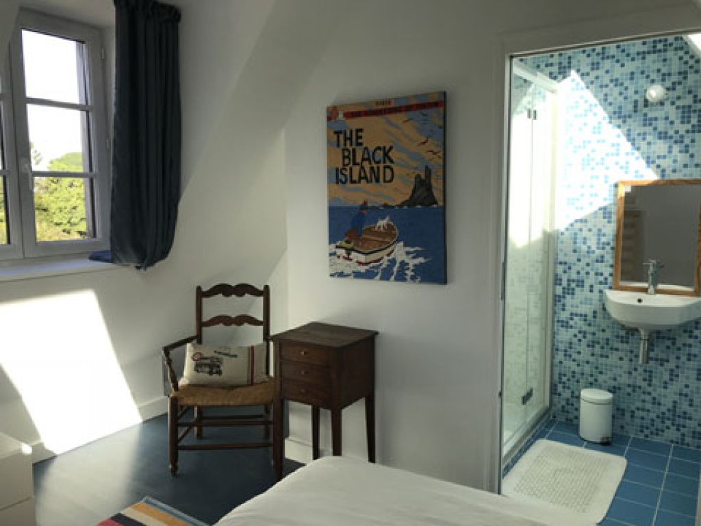 Située à 10mn du port et du bourg et à 250 m d’une petite plage. Vue mer depuis l’étage.