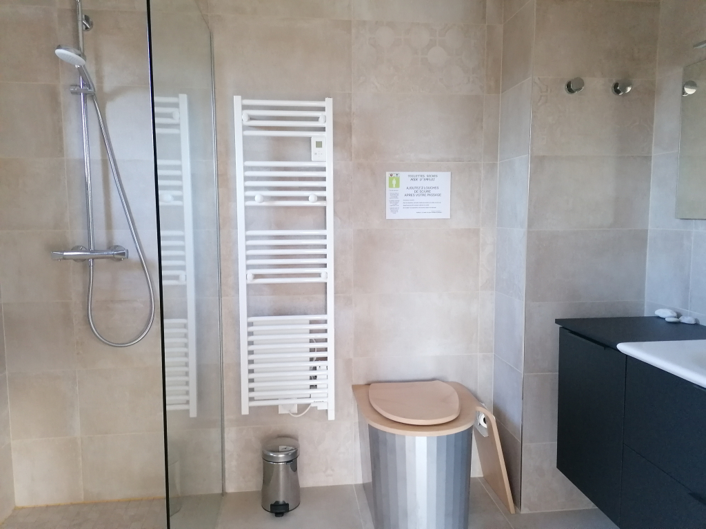 Matériaux écologiques. De plein pied et accessible PMR. Il dispose d'une pièce de vie avec cuisine équipée et coin salon; Une chambre avec lit de 160. Une salle de bain avec douche à l'italienne et équipée de toilettes sèches. Une mezzanine avec banquette BZ munie d'un bon couchage en 140... Une terrasse et un jardin plein sud avec barbecue,salon de jardin,et chaises longues.