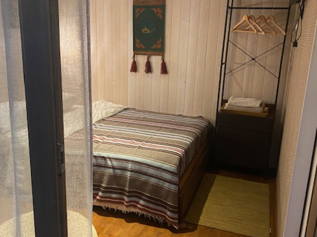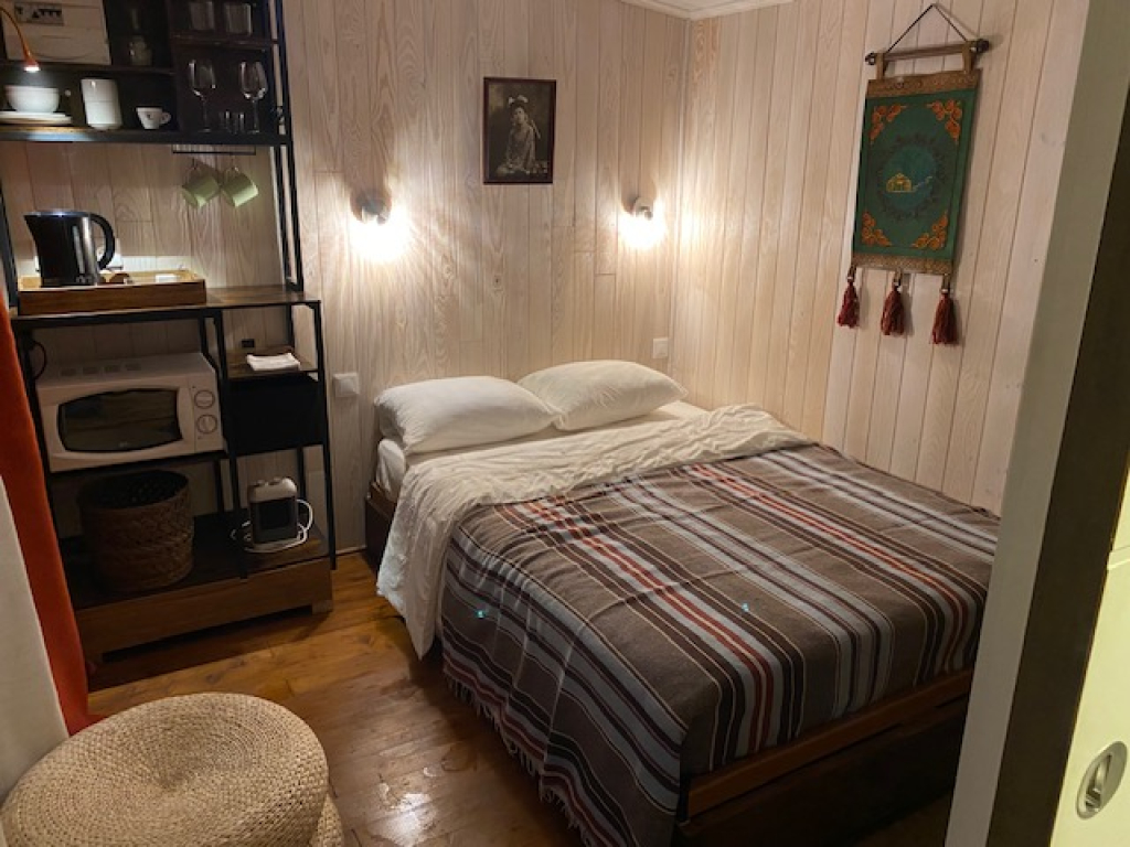 Tiny house de 9 m2 une chambre avec coin cuisine et des sanitaires , douche à l'italienne.