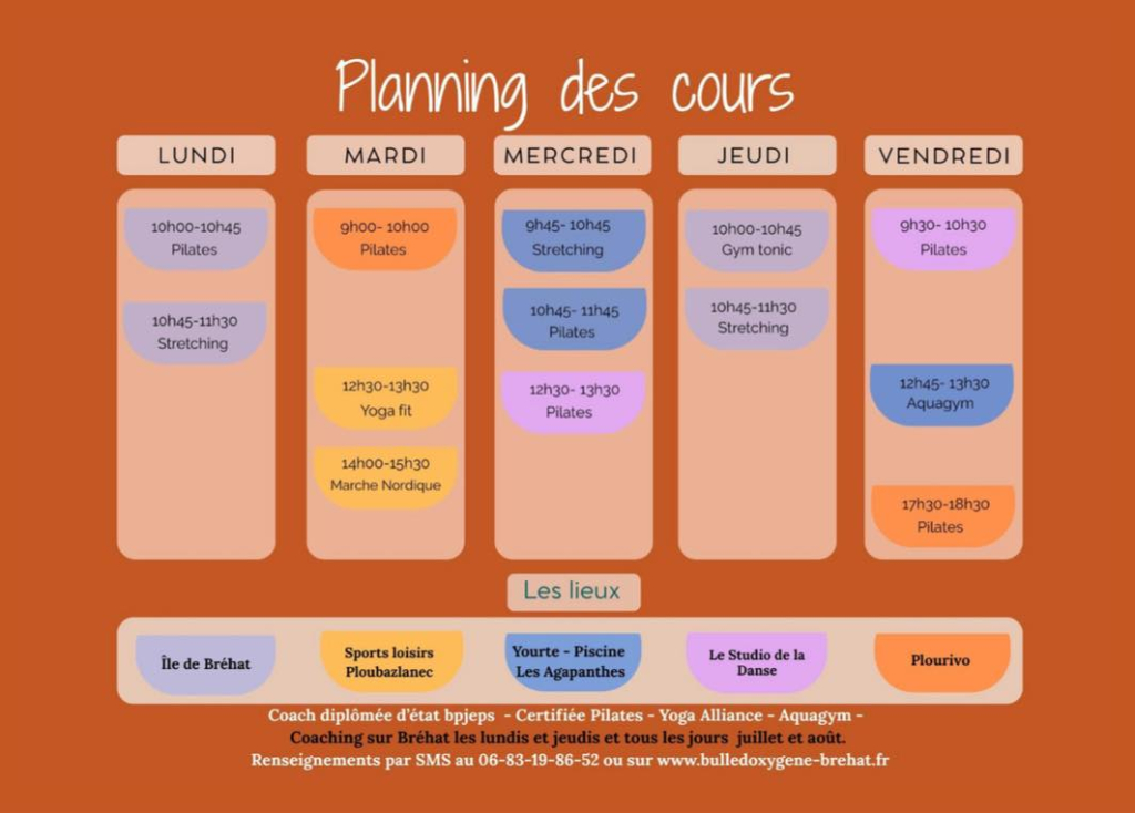 Bulle d’oxygène vous propose des activités sportives et de loisirs sur l’île de Bréhat pour petits et grands. Balades touristiques, fitness, yoga, baby-gym, stage Pilates…