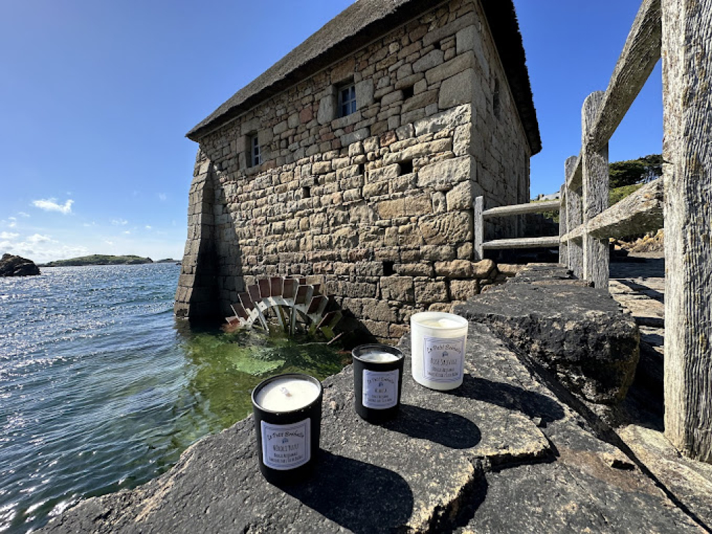 Toutes les bougies et fondants sont fabriqués sur l’île de Bréhat, uniquement à partir de cire 100% végétale et avec des parfums sélectionnés sans substances cancérigènes.