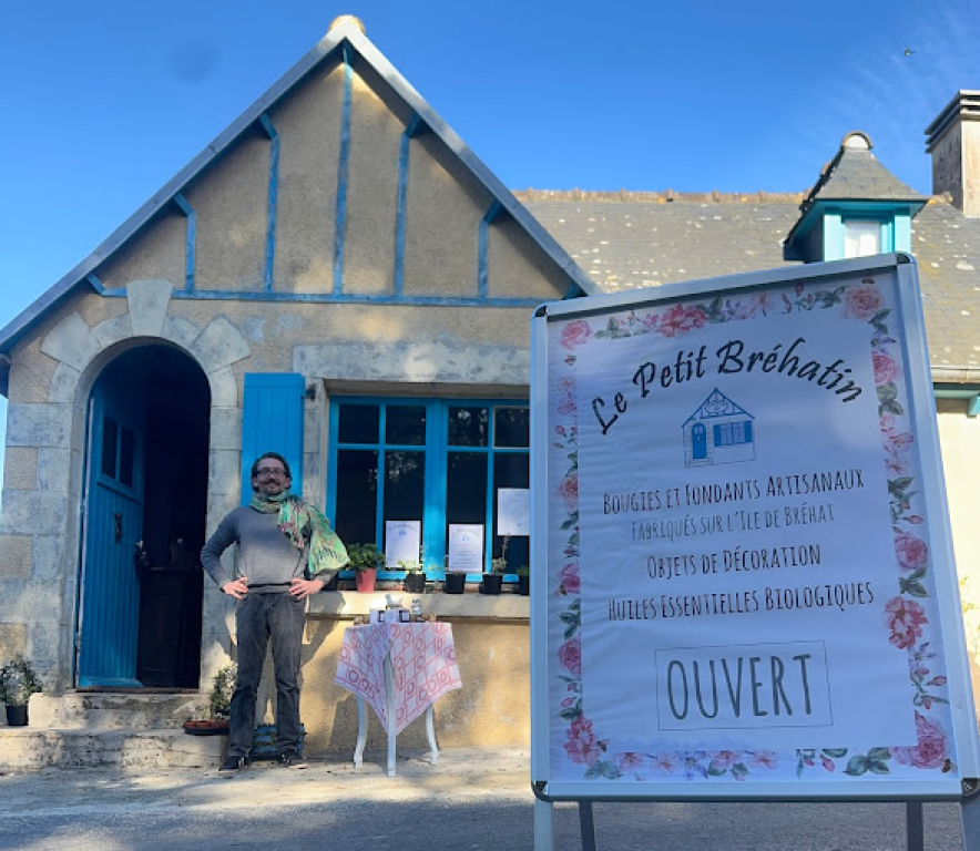 Erwan vous accueille dans sa boutique de vente de savons et bougies artisanaux fabriqués sur l’île de Bréhat.