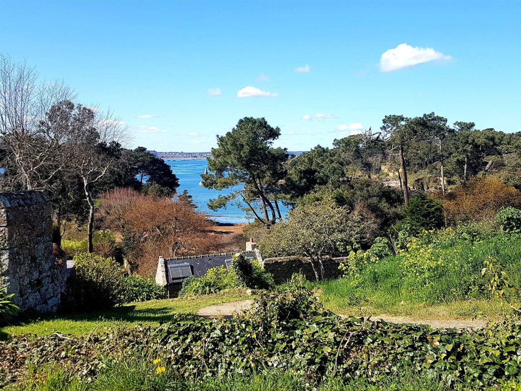 Jolie maison de granite, avec jardin clos et vue sur la mer, exposition plein sud.