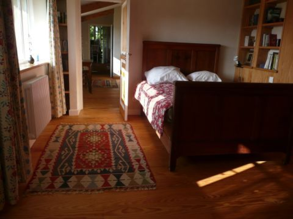 Une deuxième chambre également avec sortie indépendante vers le jardin, 1 lit (1, 40 m x 1, 90 m), sa salle de bain + WC