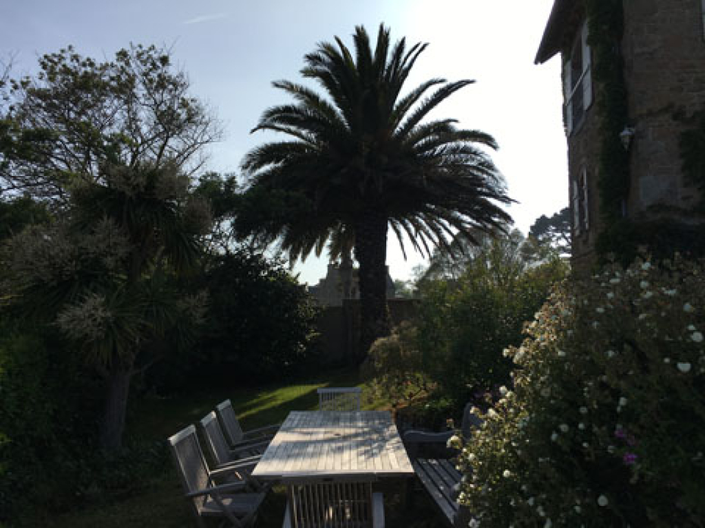 Jardin avec accès direct mer et petite plage, salon de jardin, tables de jardin, barbecue (gaz).