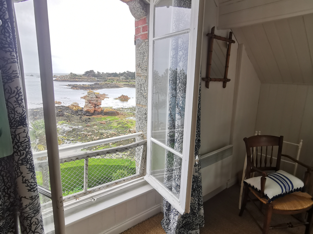 Maison avec une vue exceptionnelle pied dans l'eau située dans l'île sud à 10 min à pied du bourg, capacité d'accueil : 9 personnes. Lits bébé.