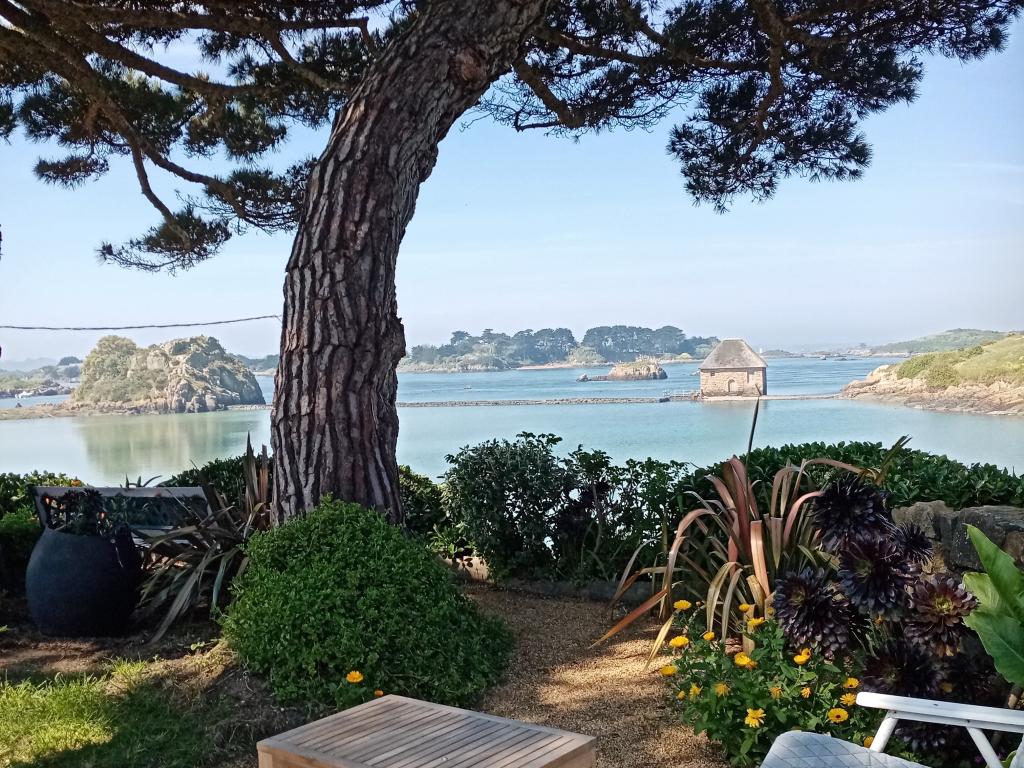 Le jardin exposé Sud-Ouest offre un espace de profond ressourcement face à l’étang de mer .