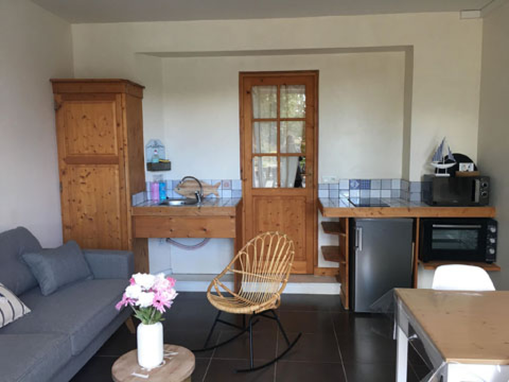 L’appartement "Fuchsia" peut accueillir 2 à 4 personnes. Il possède une chambre avec un lit 160x200 et un canapé convertible 140x200 dans le salon (linge de lit fourni).