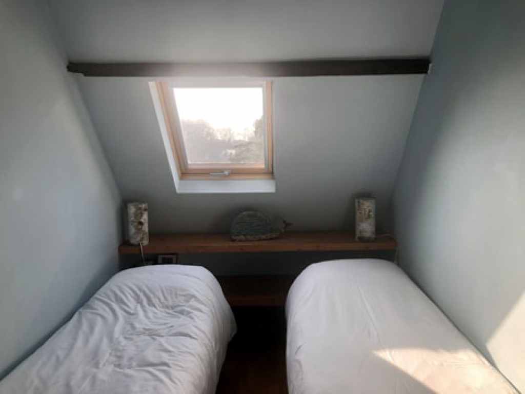 Chambre 2 : 2 lits simples à mémoire de forme (70x190) qui peuvent également être réunis. Possibilité d’un cinquième couchage (chauffeuse dépliable).