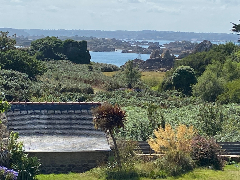 La maison donne au sud avec un grand jardin et une vue magnifique sur la mer.