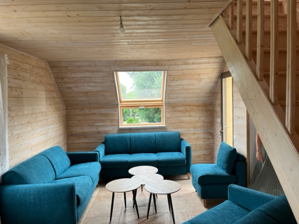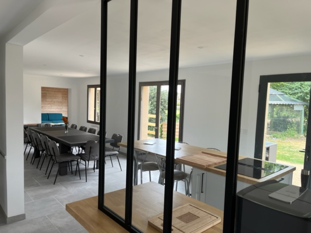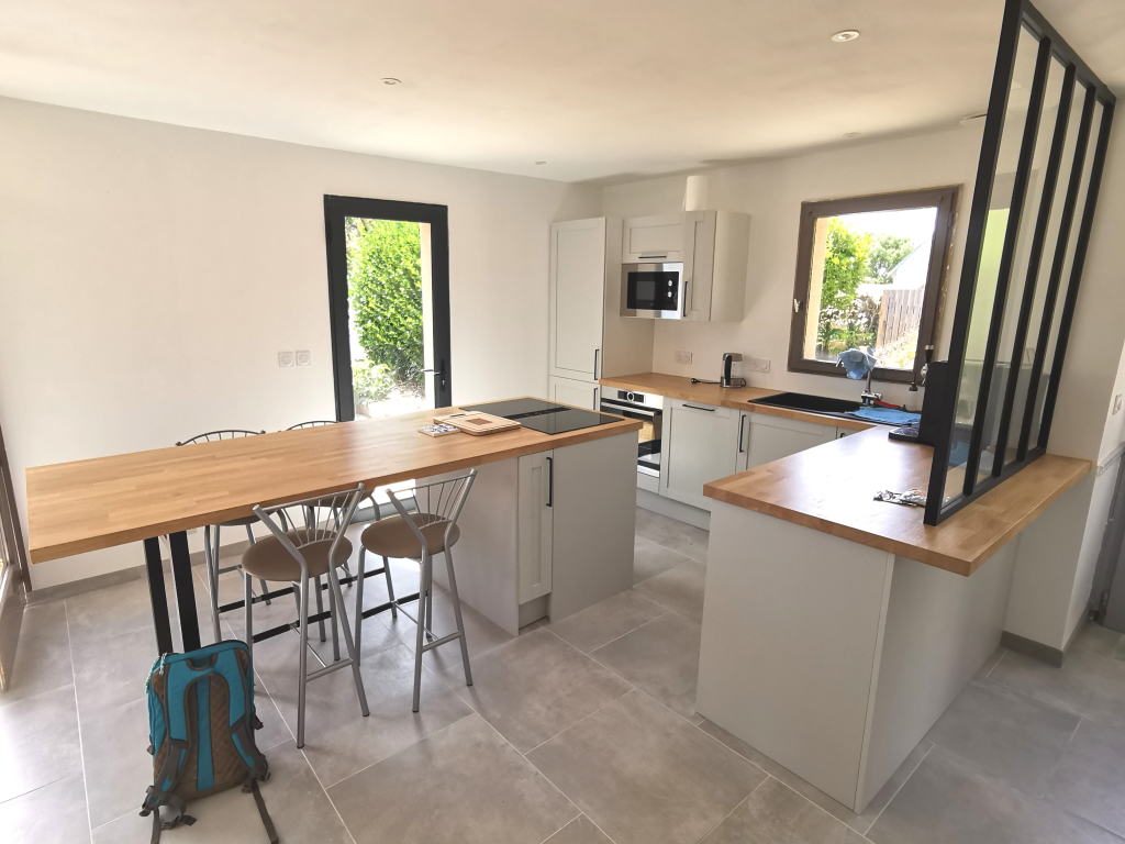 Au rez-de-chaussée grande pièce à vivre ouverte sur la cuisine avec un coin salon, 1 buanderie, 1 véranda, 1 salle de bain avec baignoire, 2 chambres dont une en mezzanine.