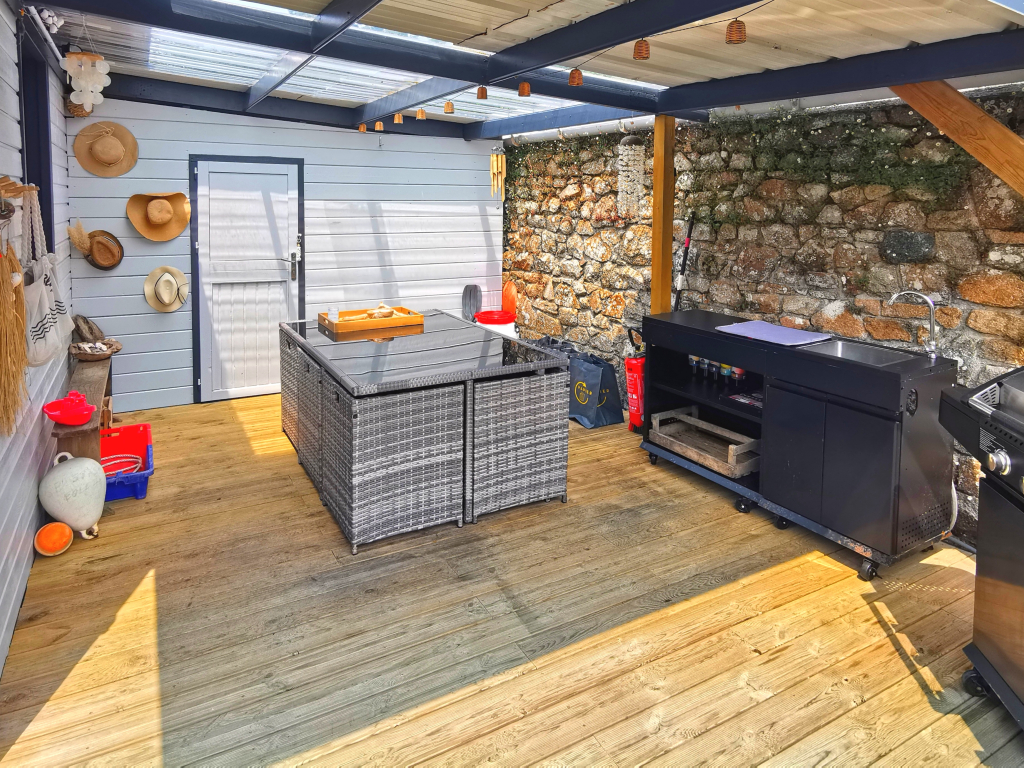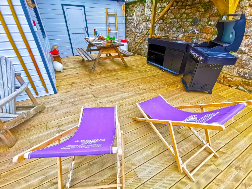 Elle est agencée afin que vous puissiez profiter de moments conviviaux quelle que soit la météo : barbecue à gaz, cuisine d'extérieur et espace repas abrités☔☀️.