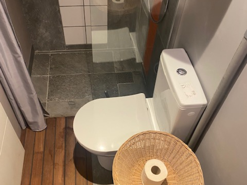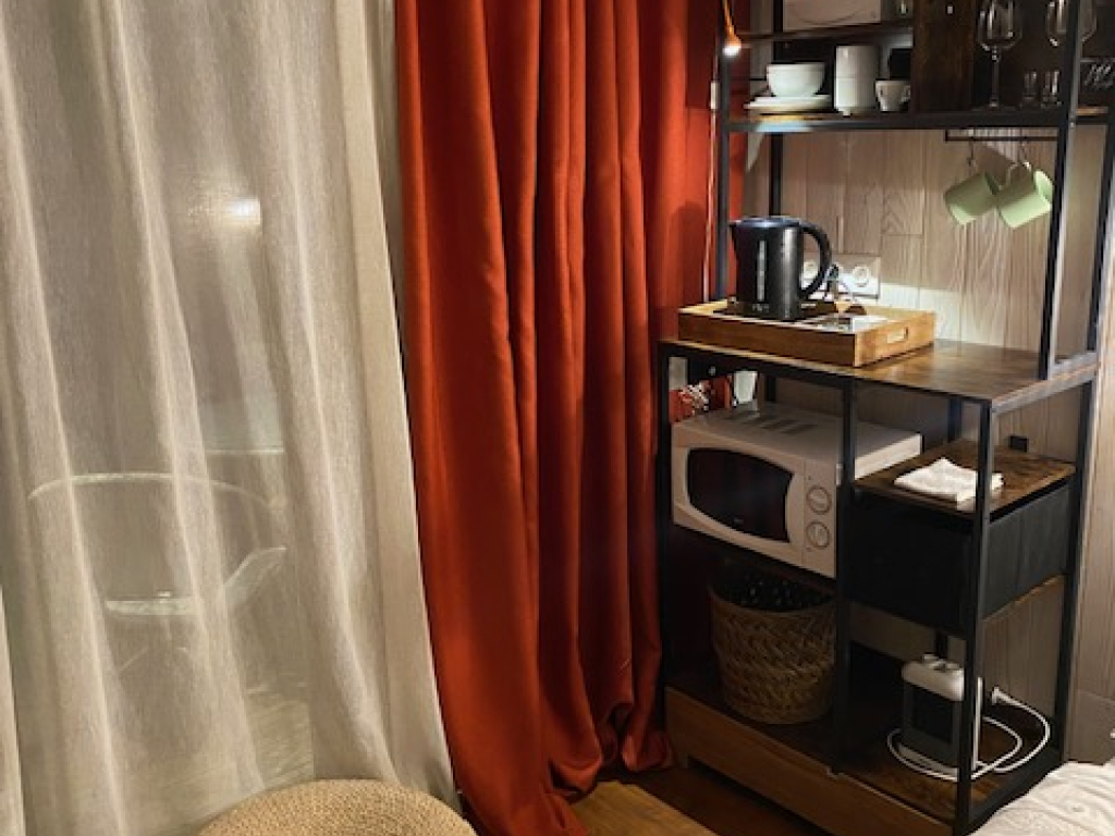 Tiny house de 9 m2 une chambre avec coin cuisine et des sanitaires , douche à l'italienne.